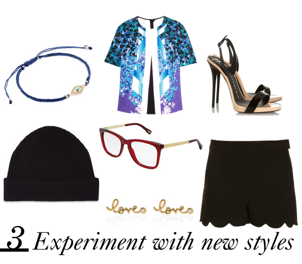 We all have a list of things we say we'll "never wear" but 2014 is an opportunity to branch out and try new things. It could be a different style of shoe than you are used to wearing, a new silhouette, swapping your contacts for a pair of glasses, or even adding a hat. Flip through fashion magazines, browse style blogs, and check Pinterest for inspiration to get started.